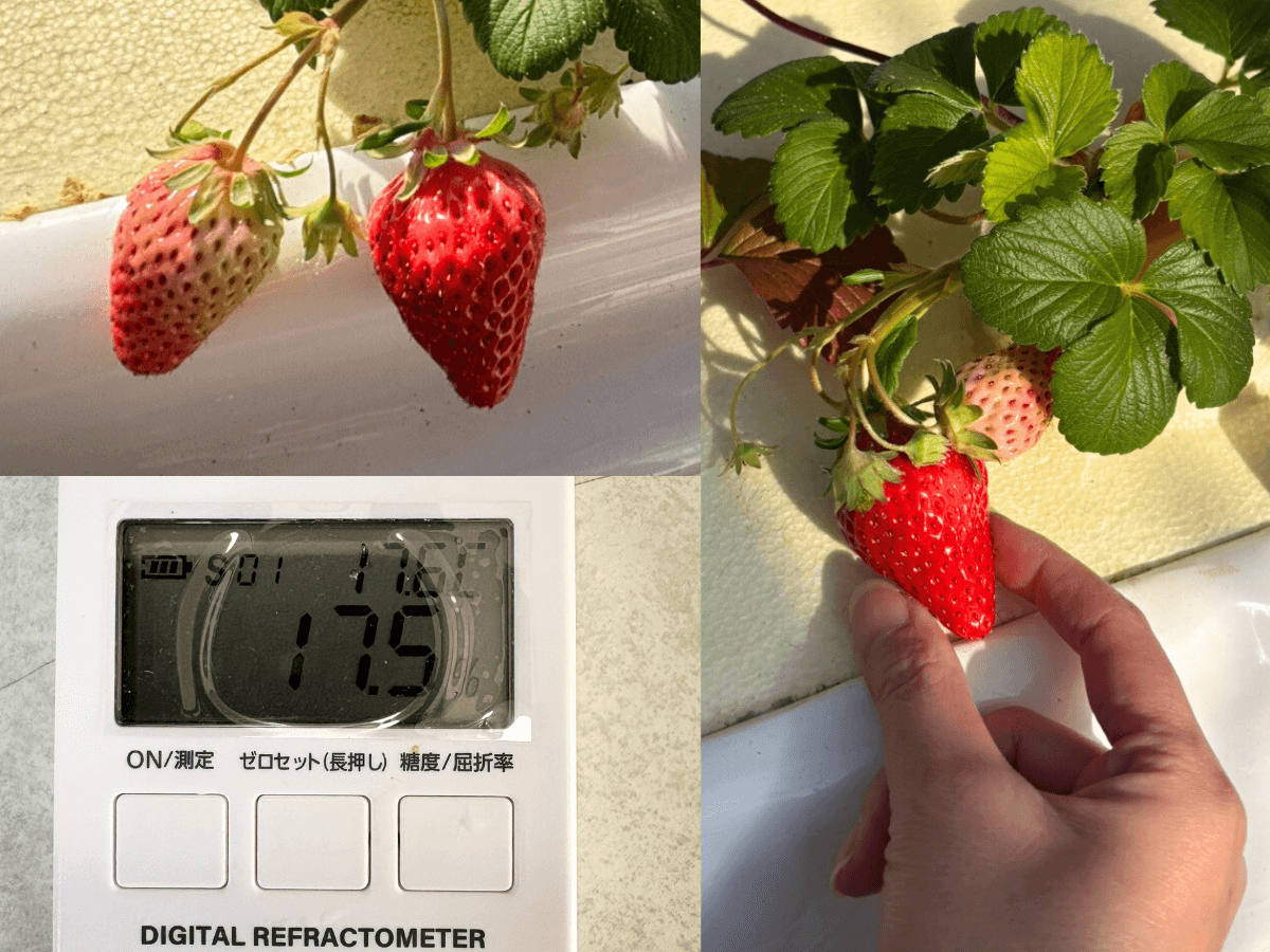 静岡県河津町の河津バガテル公園では、「生きてる肥料」を使ったいちご栽培の実験を進めています。