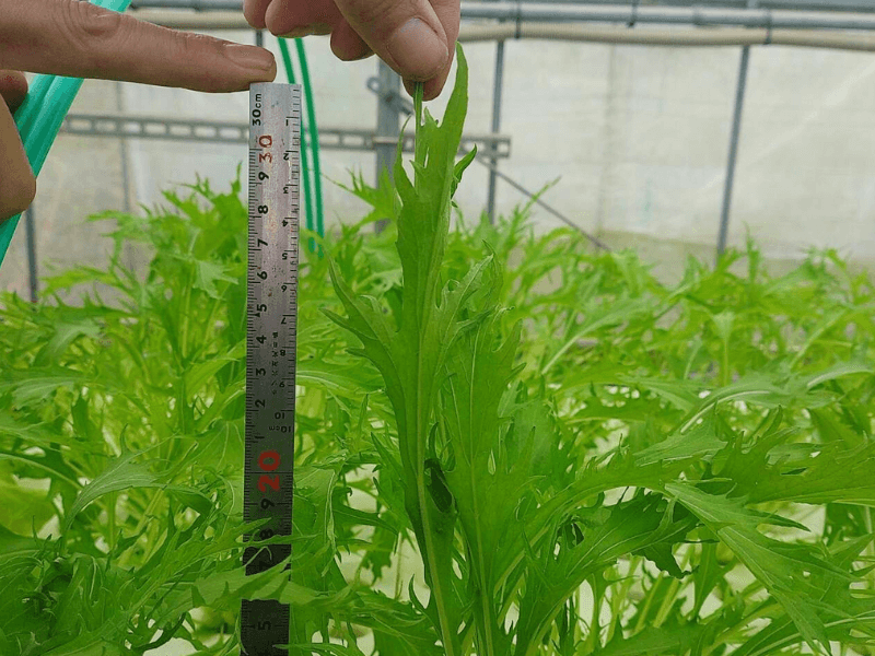 11月の寒さにも負けず、水温だけをコントロールして育った水菜。